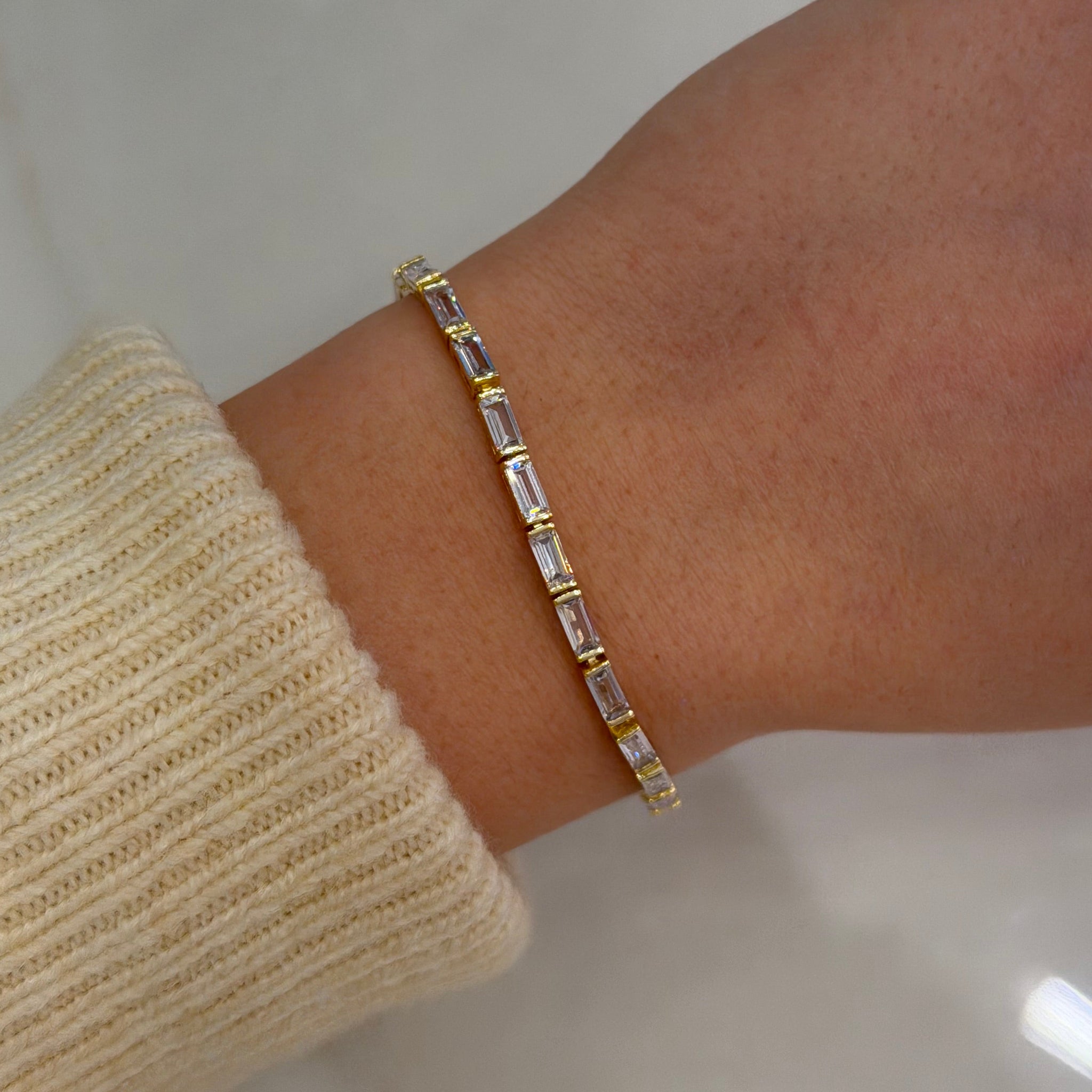 Meet your new sparkle staple. The Disco Tennis Bracelet features brilliant CZ stones set in luxe 14k gold vermeil designed to catch the light with every move. At 17 cm, it’s the perfect size for effortless everyday stacking.