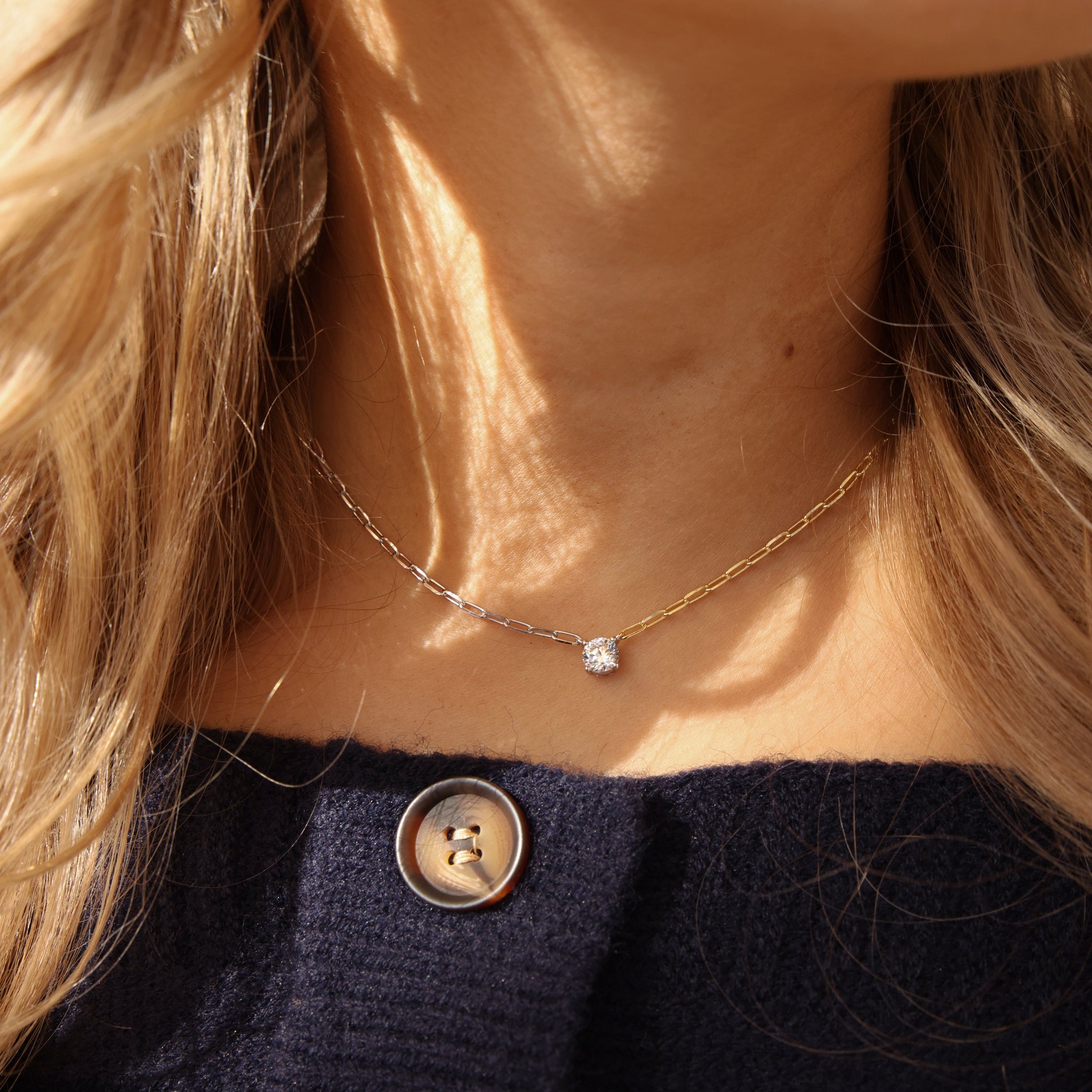 Elevate your everyday look with the Timeless Chain CZ Necklace in stunning two tone finish. This sleek, polished piece features a classic link chain design adorned with brilliant cubic zirconia accents for just the right amount of sparkle.