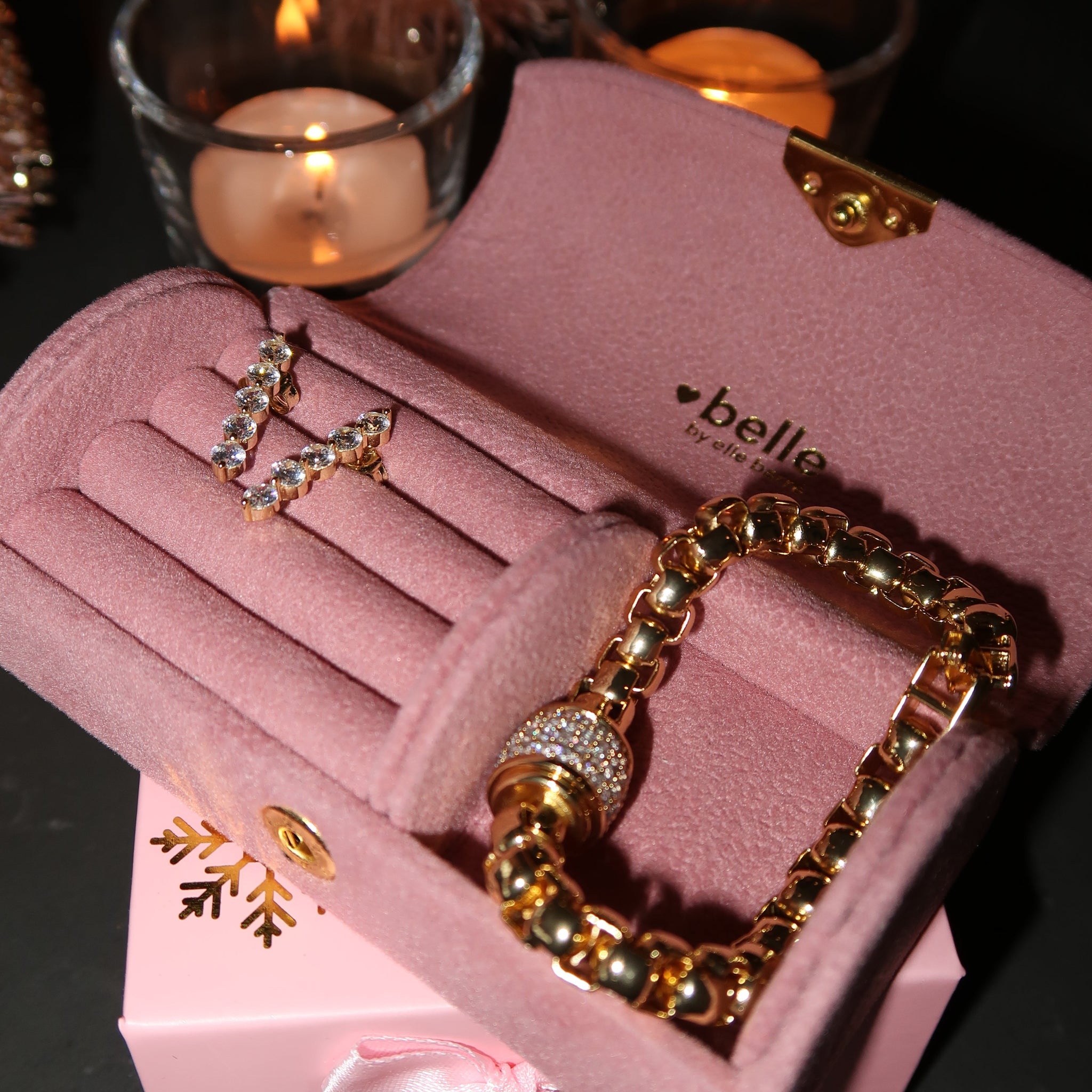 This chunky statement bracelet is too cool effortlessly impressive and designed to stand out. Finished with sparkling CZ stones and luxurious 14k gold plating, it’s the bold piece your stack has been waiting for!