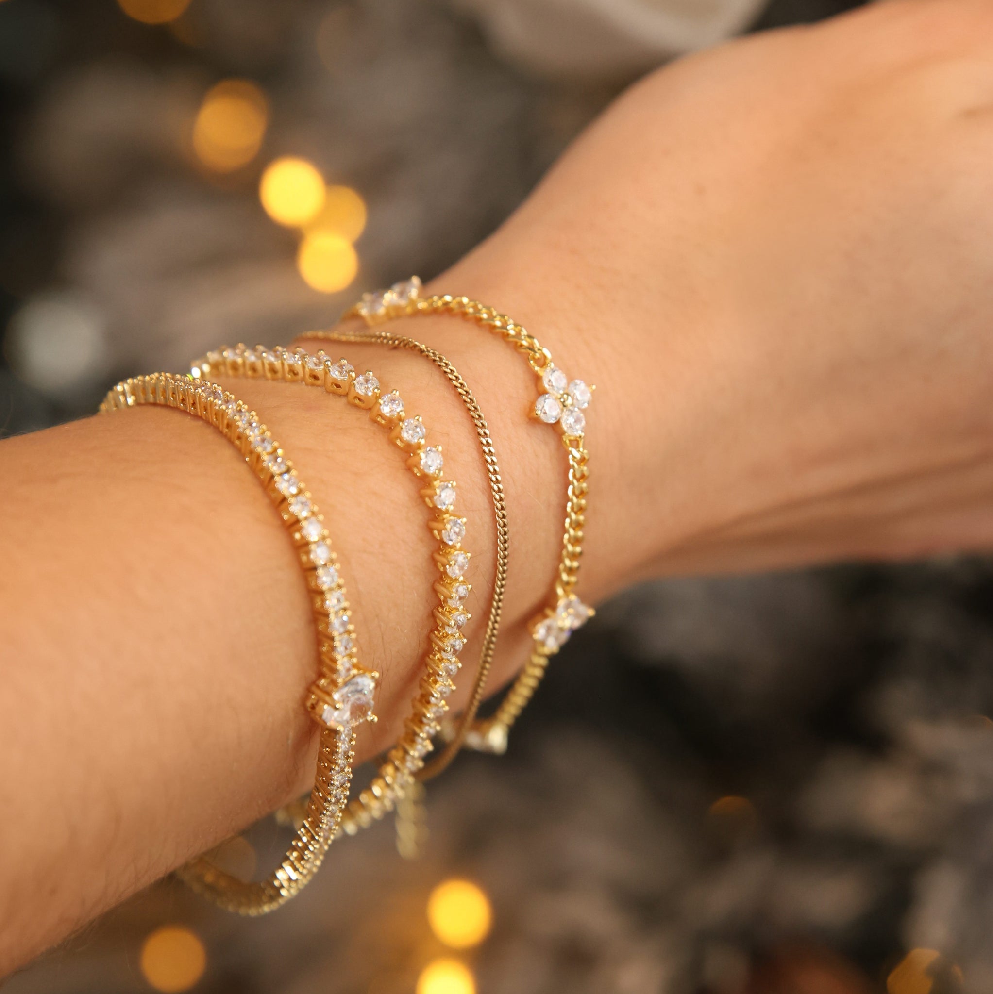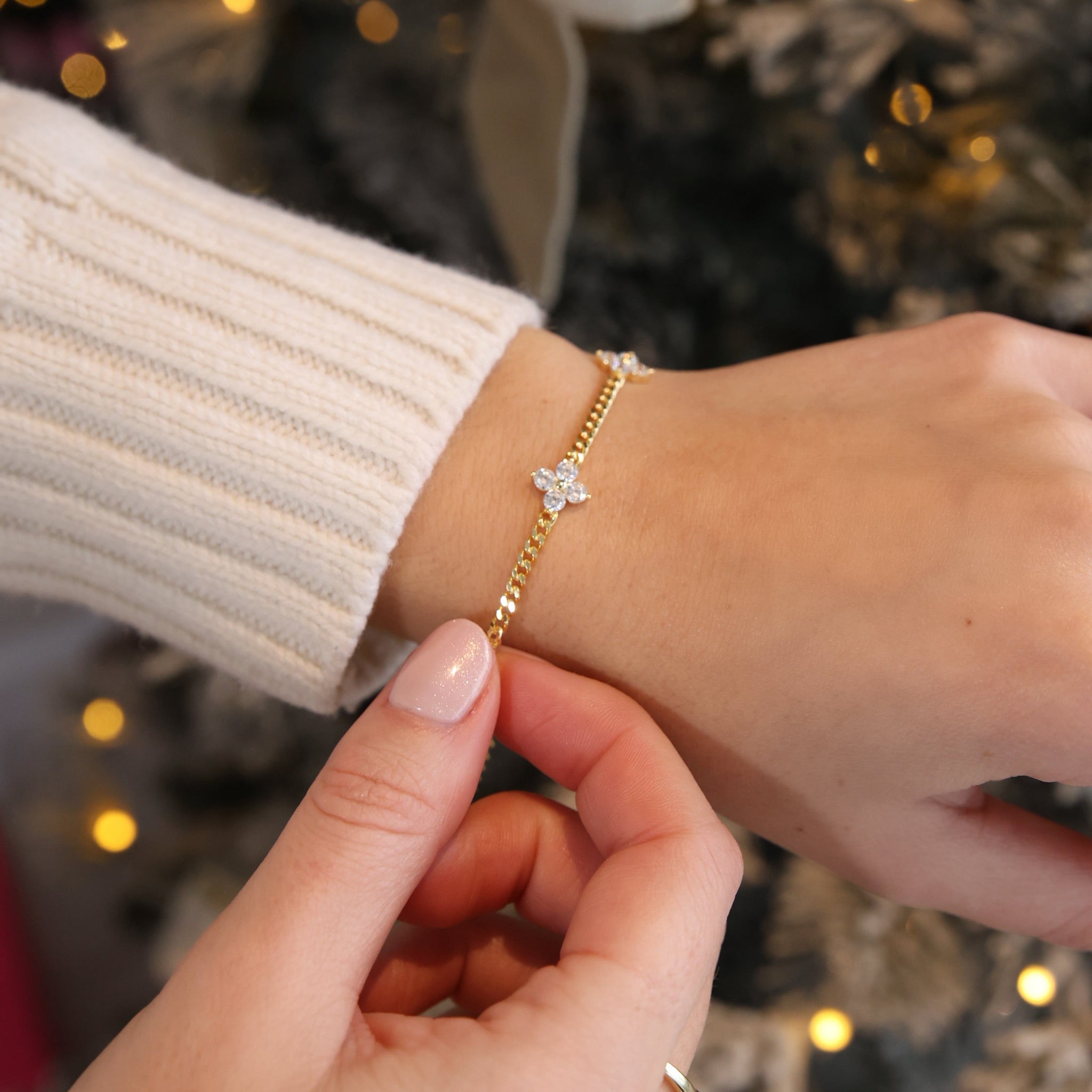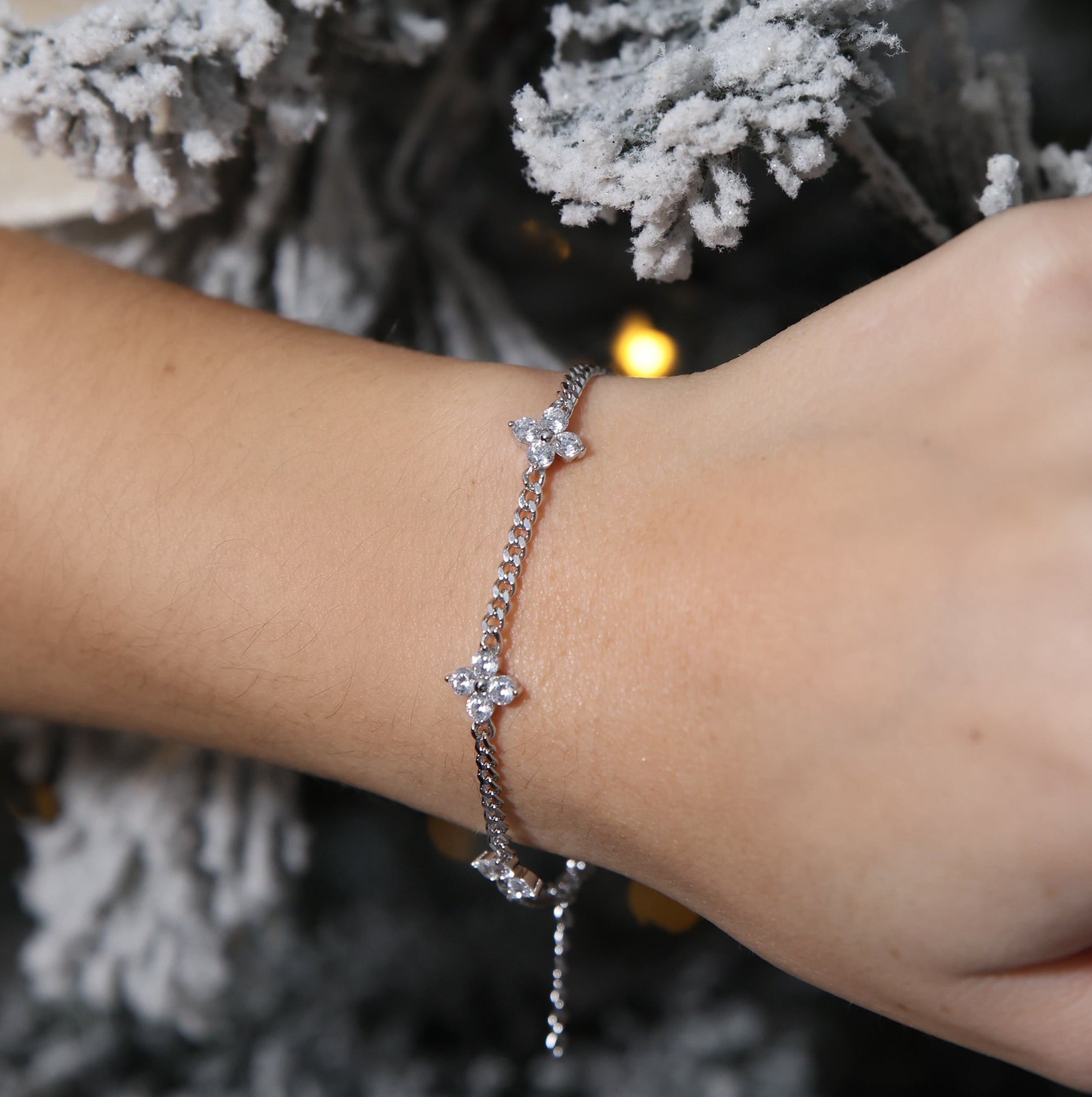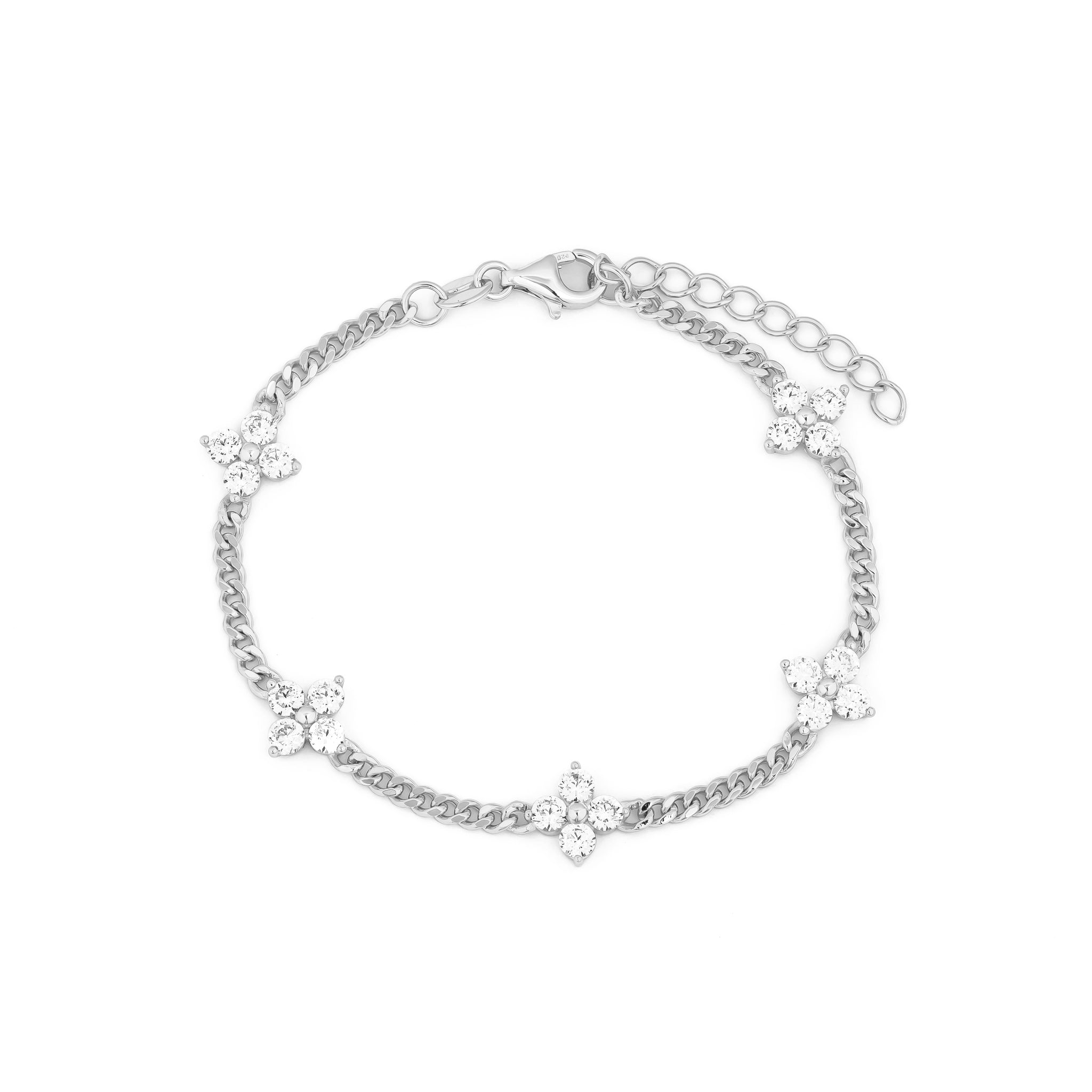 This delicate chain bracelet features shimmering CZ flower motifs (each 9mm) that add the perfect touch of elegance and sparkle to your everyday look.
