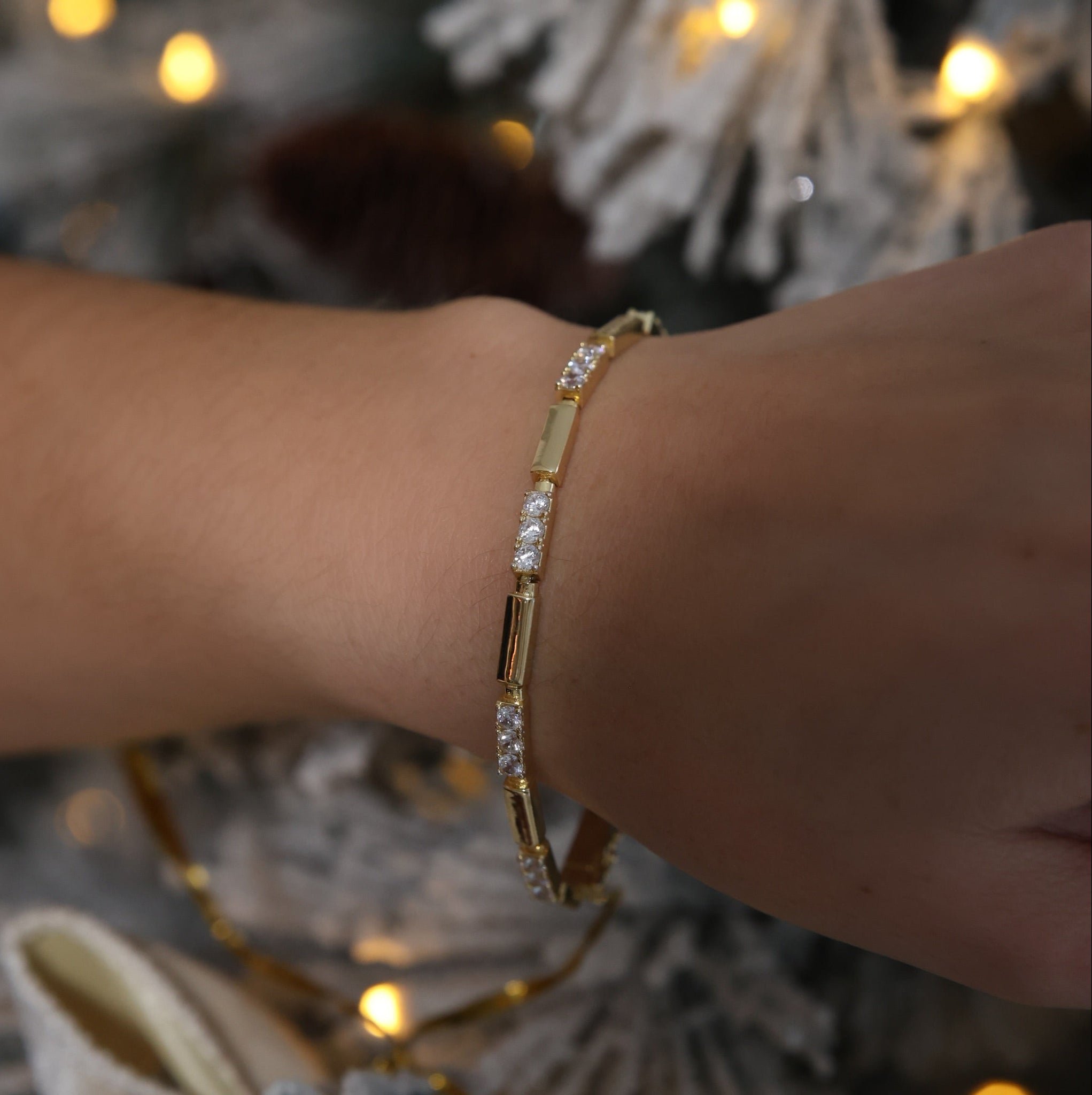 This 17.5 cm bracelet features shimmering CZ stones that catch the light beautifully, adding an effortless glow to any wrist stack.